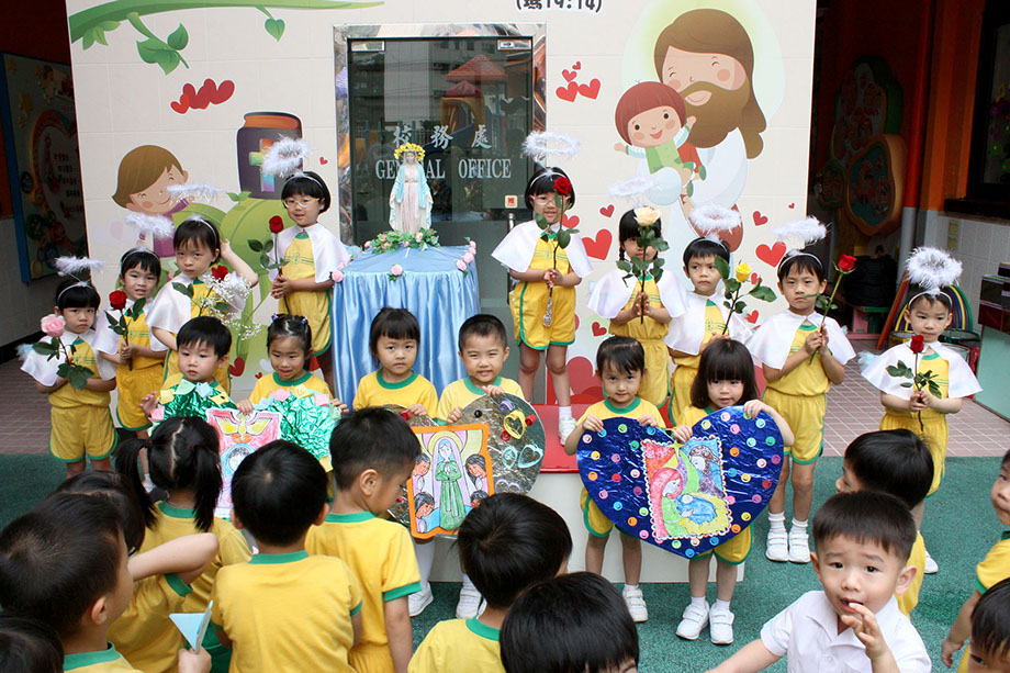 本校於五月四日(星期四)舉行了聖母月敬禮活動-聖母巡遊。由甘修女及公教同學代表領路,護送著聖母像由後走廊出發,經過活動室,最後到學校操場,沿途詠唱「法地瑪聖母」。其後,一同頌唸聖母經,甘修女更為聖母像加冕,最後幼兒上前獻上心心和花朵,藉此表達對聖母的孝愛。