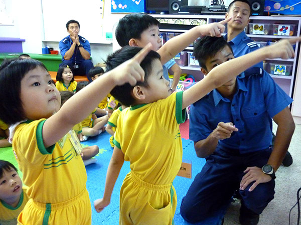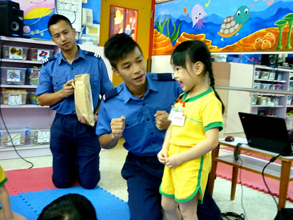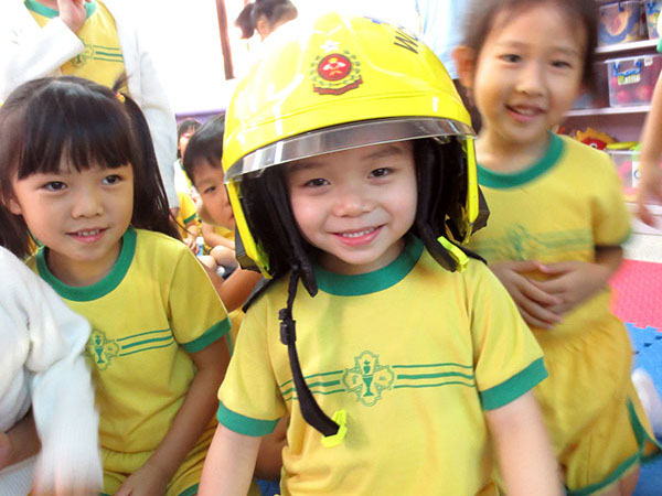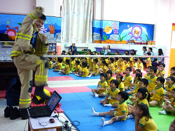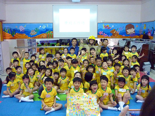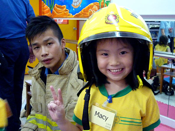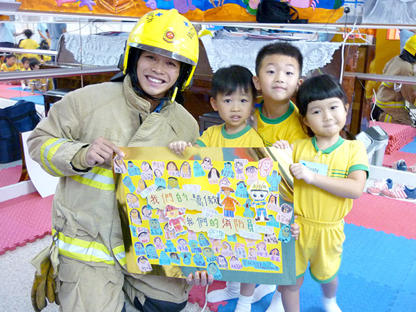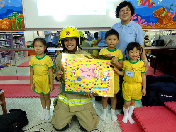 配合高班主題《他們都愛我》,讓幼兒認識爸爸媽媽的職業及工作,本園於10月6日邀請了幼兒消防教育組--灣仔消防局的消防員到校講解有關消防員的工作和防火知識。消防員的講解生動有趣,以故事和問答遊戲的形式進行活動,小朋友表現興奮,投入聆聽消防員的講解,幼兒看見勇敢的消防員時,還說長大後要當一位消防員。