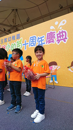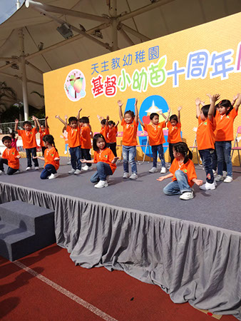基督小幼苗於十月八日(星期六) 在蒲崗村道學校村舉行十週年慶典,當天由天主教香港教區陳志明副主教主禮,本園基督小幼苗更在聖道禮演繹福音--撒種的比喻,而高班義梁凱彤同學並代表基督小幼苗宣讀承諾。感恩祈禱禮後,小幼苗更參與親子遊戲,與爸爸媽媽渡過了一個愉快的上午。