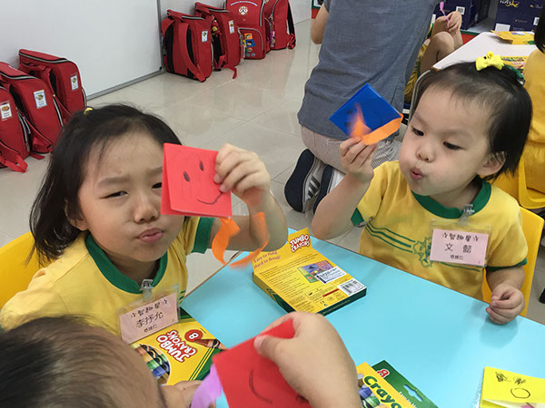 本園於本年度參與香港青少年服務處《兒童情緒教育 - 智趣星計劃 》,並讓低班學生參與活動,由於申請人數非常踴躍,超出所定的限額,更將原定24課節改為8課節,並分三組(每組12人) 於不同時段進行,活動內容以情緒為主題,透過繪本故事、互動遊戲、討論及手工創作形式進行,讓幼兒認識不同的情緒及處理的方法,並幫助幼兒建立正面的情緒。