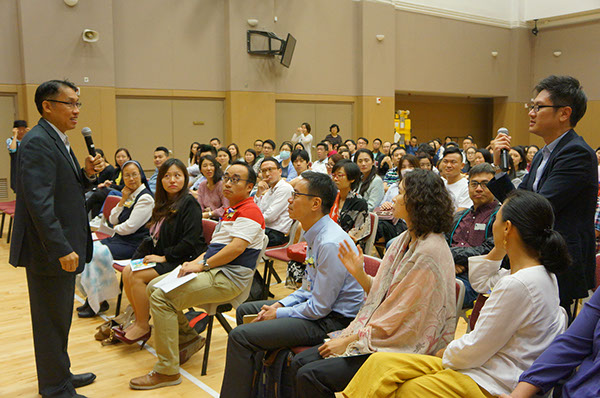 2016年11月17日(四)晚上,本園家長教師會於禮頓山社區會堂舉行「第十七屆委員就職典禮」暨『專題講座~讓孩子高飛』。新任委員獲校監區綺雯修女頒發委任狀,並在家長們的熱烈恭賀下宣誓就職。當晚我們邀請到余國健先生為我們舉辦專題講座「讓孩子高飛」。余先生透過影片播放,以生動有趣、生活化手法講解、分享個人經驗,令家長們在輕鬆、愉快氣氛下享受這次的講座。