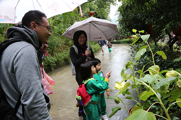 2016年11月26日(六)家長教師會舉辦「親子旅行~大棠有機生態園」。當日雖然下著雨,小朋友與家長們撐著兩傘準時到達金紫荊廣場集合。我們分別乘坐19部旅遊車,浩浩盪盪地駛往目的地。由於天雨關係,我們沒有拍攝大合照,但也拍攝了部份精彩花絮,您看家長們與孩子很勇敢地冒著雨前往活動場地進行遊戲,有些人在湖心亭餵魚、有些人玩大型網陣、踏單車、騎馬車、撈金魚、吹泡泡及餵飼動物等。因天氣不穩定,我們也提早踏上歸途。
