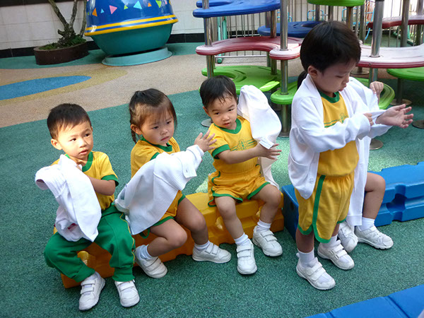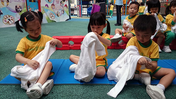 幼兒班小朋友於「小猴子長大了」主題中,進行了「自理能力大比拼」活動。透過是次比拼活動,讓幼兒認識自己的能力,並藉著活動激勵他們自行穿脫鞋子、外套及收拾茶點物品,從而提昇幼兒的自理能力。在比拼過程中,幼兒更學會互相鼓勵,利用所學的兒歌「做得好」為同伴打氣。各位小朋友,努力!加油!