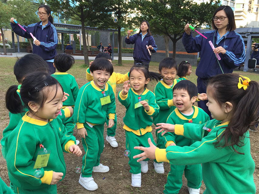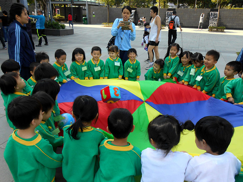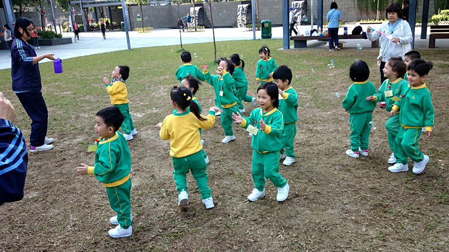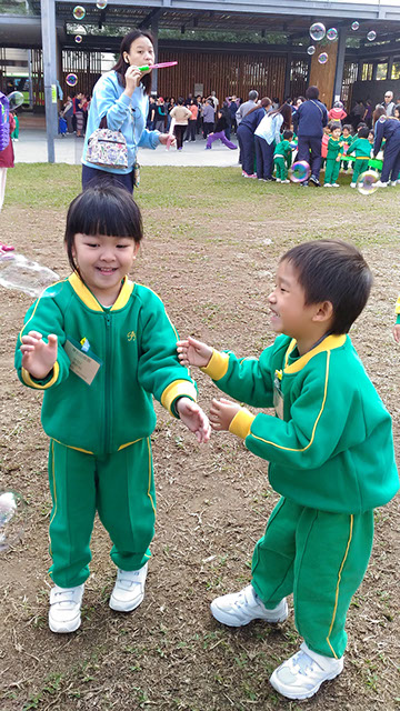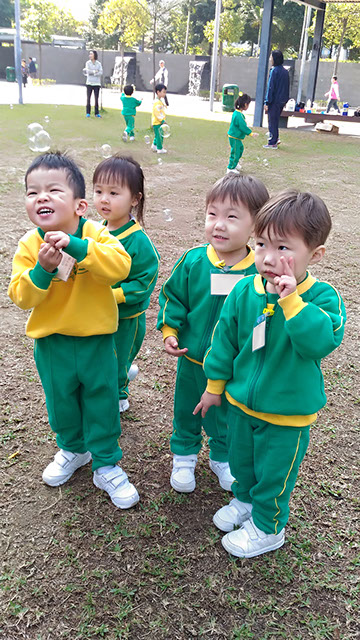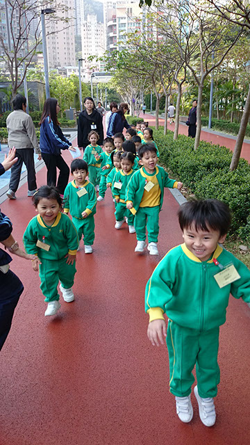 公園設有不同的設施,如:兒童遊樂場及緩跑徑等。小朋友非常喜歡玩滑梯,大家亦很享受在緩跑徑與老師一起跑步的樂趣。我們還在公園的空地位置跳呼拉圈及玩彩虹傘,更在草地上玩吹泡泡,大家都開心極了!