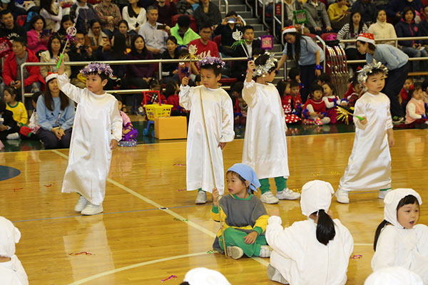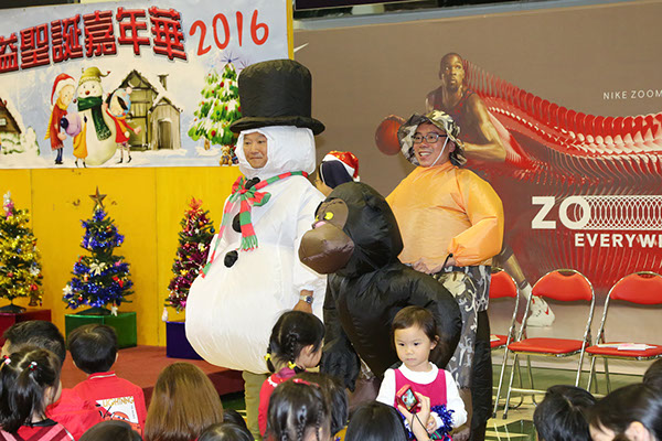 普天同慶聞佳音、聖誕節裡[誰是主角]?在2016年12月20日,本園在灣仔修頓室內運動場舉行「親情洋溢聖誕嘉年華」,全體師生和家長齊齊慶祝主耶穌的降生。首先由低班學生表演齊唱齊跳聖誕節歡歌熱舞拉開序幕,再有高班學生同場表演聖劇[喜迎救主降人間],以精彩嘅演出,講述聖誕節嘅意義,讓大家明白,聖誕節嘅主角就係主耶穌。然後,幼兒班以一首歡快的生日舞,為小耶穌慶祝生日。除了精彩的表演外,當天還有親子遊戲,家長教師會的委員更扮演有趣的造型出場,與全場家長及幼兒共聚歡樂。最後,老師送上一份有意義的聖誕禮物給小朋友,嘉年華在充滿愛的笑聲中完結。