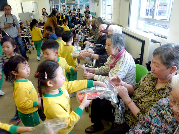 2017年1月7日(星期六),家教會與本園宗教組合辦「家校同心表關懷~親子探訪護老院」。我們在下午2時半到達鴨脷洲香港基督教女青年會 鄭傍卿護理安老苑,公公婆婆已安坐在禮堂等待著。由司儀余老師帶領小朋友頌唱~「基督小幼苗、讚美主、耶穌喜愛小孩」等歌曲來感謝天主。跟著孩子們蹦蹦跳跳地表演活力健康操;透過「敲咚咚」音樂,孩子替公公婆婆們搥骨,場面溫馨熱鬧。葉主任帶動全場齊做「十巧操」運動。今年我們邀請了兩位義工合唱時代曲,大家齊拍手讚賞。賀新年歌曲播出,我們預早向公公婆婆拜年並送出一份「愛心禮物」,讓公公婆婆感受到我們的關愛。最後由苑舍人員帶領探訪其他院友,並說聲再見來結束這天有義意的探訪活動。