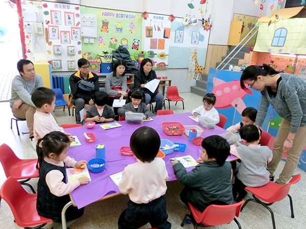 本園於2017年 1 月11至13日為幼兒班家長安排到校觀課活動,讓家長觀察孩子一天的課堂活動,了解學校的教學目標及幼兒學習的需要。透過觀課後的分享,大部份家長都認同學校的教學方式並表示幼兒喜歡上學。同時很高興看到孩子能投入課堂、積極參與活動,與同伴相處良好,在自理及學習方面均明顯有進步,整體都很滿意是次觀課的安排,非常感謝老師的耐心教導。
