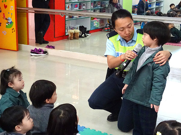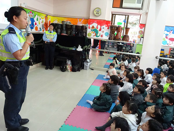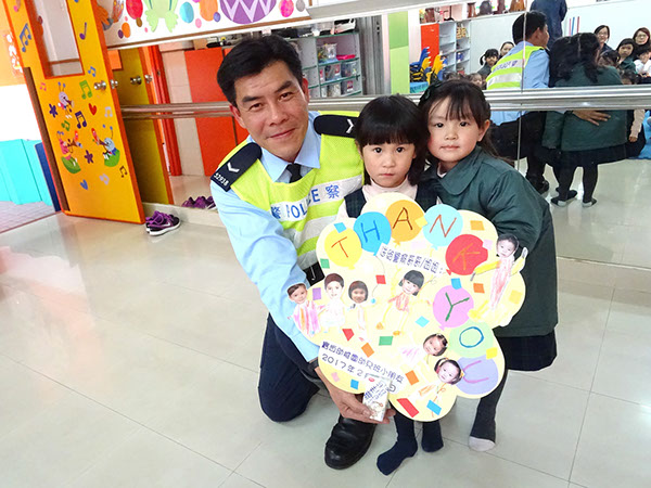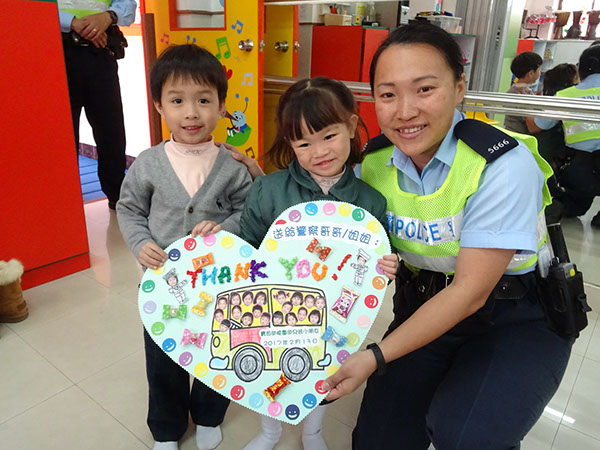 2017年2月13日,我們邀請了香港警務署道路安全組警察叔叔及警察姐姐到校為幼兒班學生舉行「交通安全講座」。當天,警察叔叔及警察姐姐向幼兒講解如何正確使用交通設施、橫過馬路的方法及應該遵守的交通安全規則,並與幼兒進行互動的問答遊戲,幼兒踴躍回答。幼兒透過這活動能夠學習正確的交通規則,整個過程充滿愉快的氣氛。幼兒更特意為警察叔叔及警察姐姐製作感謝卡,以示謝意。