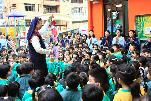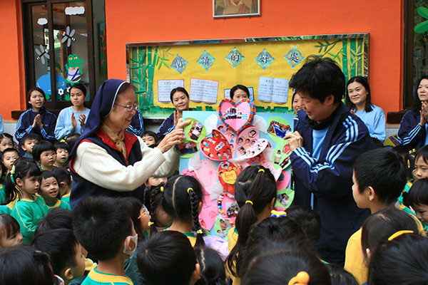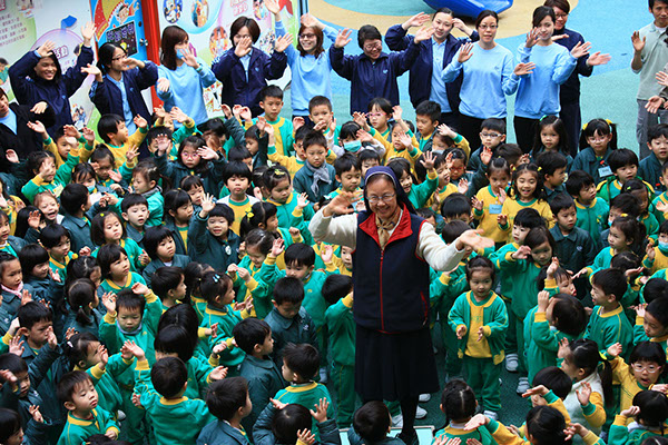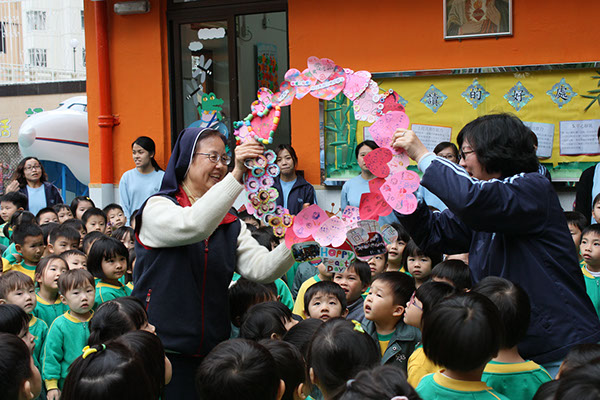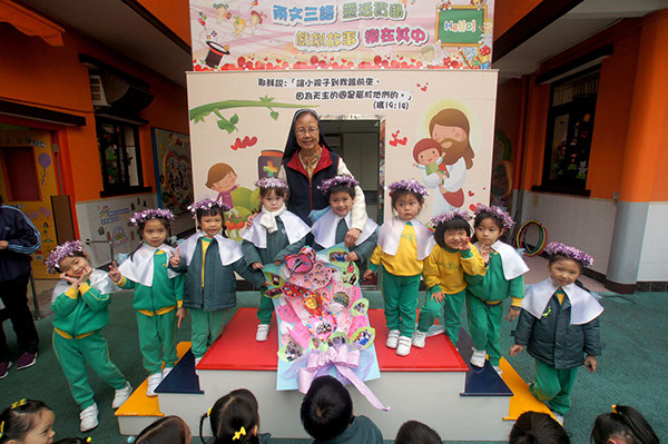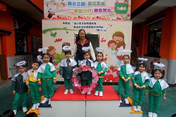 2017年3月16日 (星期四) 是慶祝甘修女瞻禮,我們一眾師生及職 員一起為甘修女慶祝,今年是「家庭年」,特别藉著歌詠「這一家」及「我的家」感謝甘修女一年來的帶領及照顧 , 全校獻上禮物 , 每班一位小天使更祝福她身體健康, 主寵滿溢,每天充滿喜樂及平安!