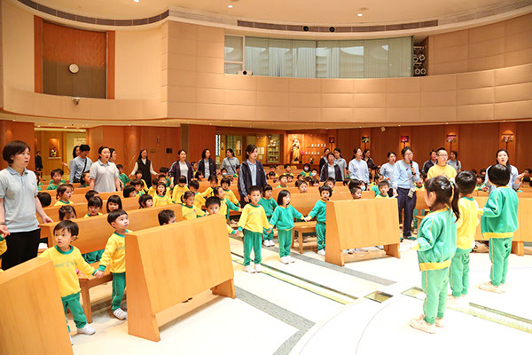 接著,我們一起默想耶穌的苦路,在禮儀中一起詠唱聖歌、祈禱及在靜默中朝拜十字聖架,我們更在主內彼此互祝平安,最後,幼兒更把零用錢捐給「天主教四旬期運動」,以發揚愛德精神。