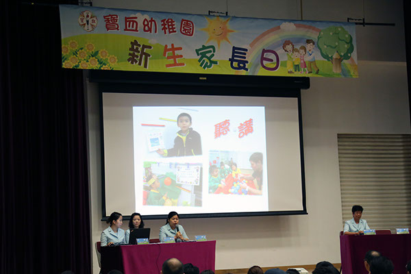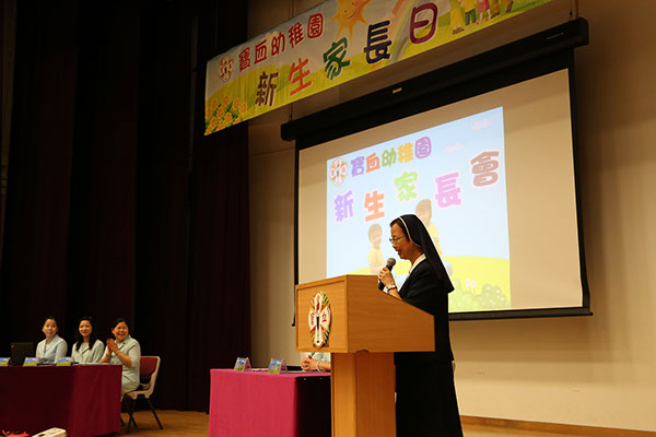 6月23日晚上於禮頓山社區會堂,為2017年度入讀本園的家長舉行「新生家長會」,當晚先由校長甘麗貞修女致歡迎詞,簡略介紹學校的背景及辦學宗旨,然後由兩位主任向家長講解開課須知、幼兒入學的準備及本園的教學理念,外籍英語老師、普通話科老師及三位級長透過幼兒上課的活動片段,讓家長了解幼兒的學習生活。最後更設答問時間,解答家長對學校或入學的問題。本園期望與家長們攜手合作,讓幼兒開展一個愉快及充實的學習生活。