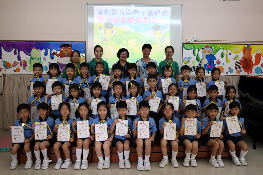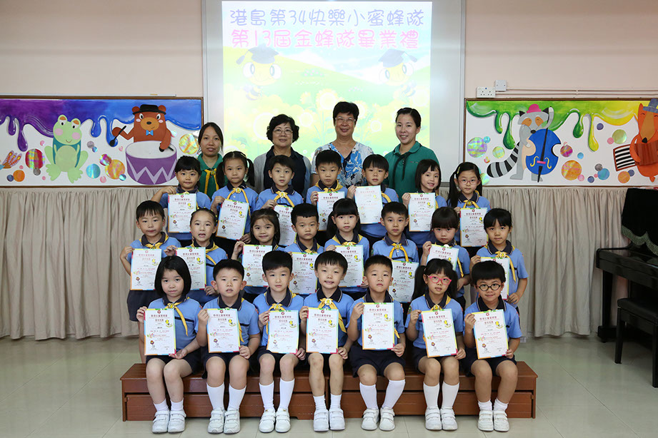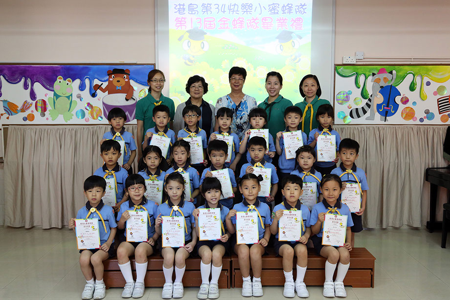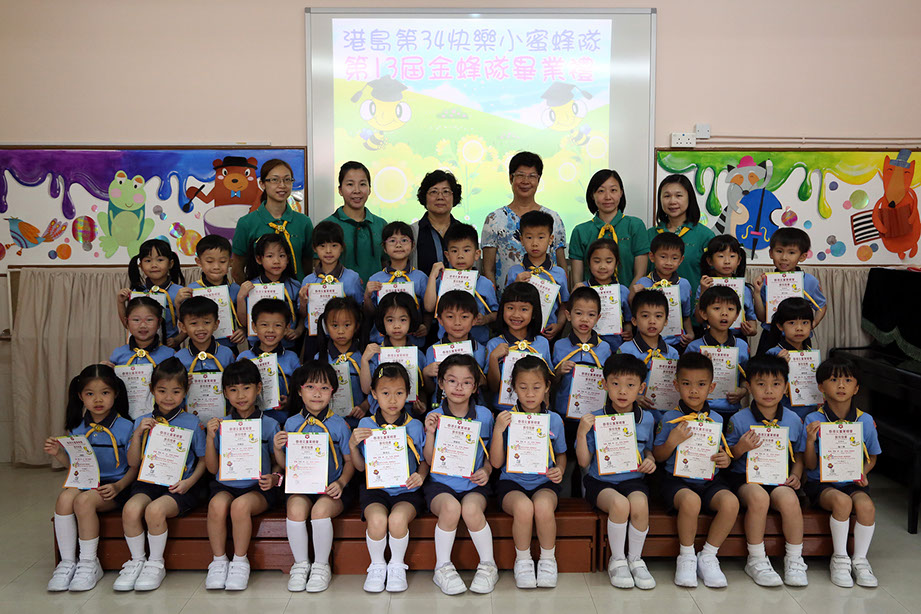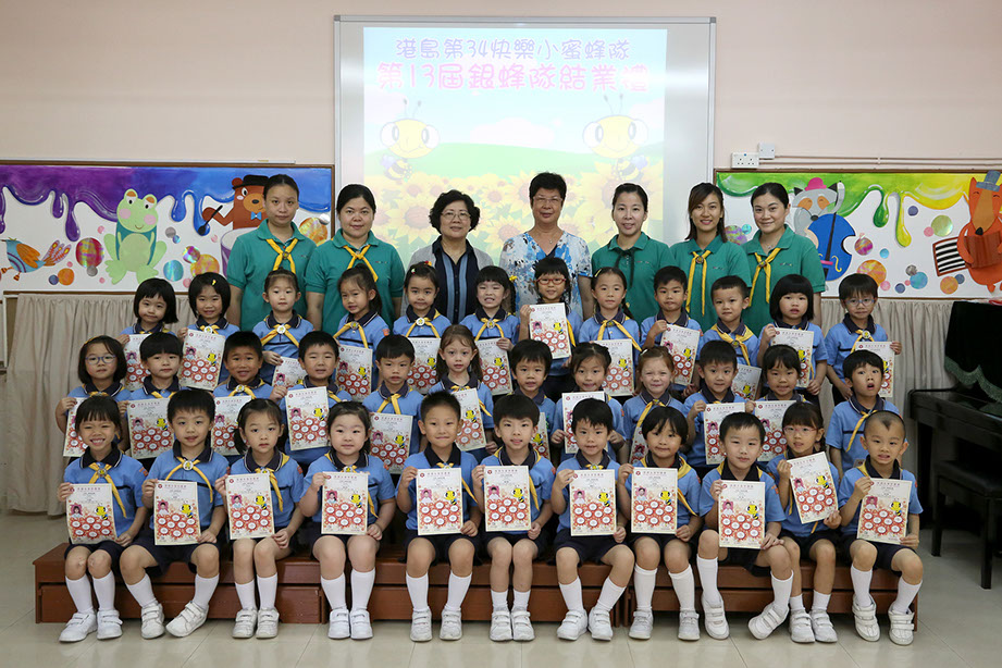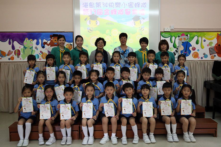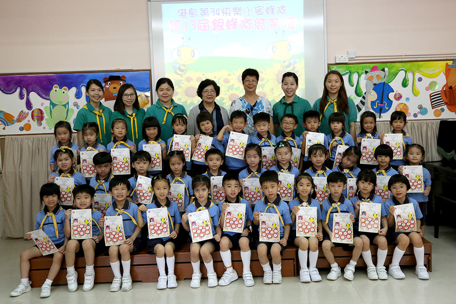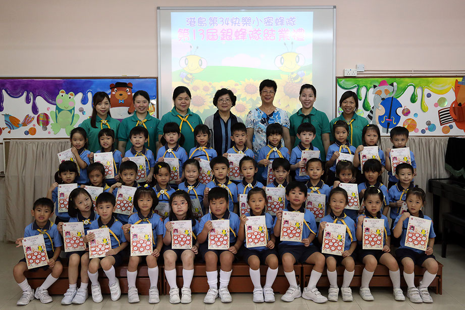 港島第34快樂小蜜蜂隊於2017年6月30日(星期五)於校內舉行第十三屆 「快樂小蜜蜂隊金蜂隊畢業禮暨銀蜂隊結業禮」。活動當天,金蜂隊和銀蜂隊隊員一起回顧這一年豐富而精彩的活動,每段開心片段留在他們心中。葉主任和彭主任更勉勵小蜜蜂要繼續發揮小蜜蜂的精神,長大後為他人、為社會服務,成為一個有用的人,勇於面對未來的挑戰。大家在溫馨愉快的氣氛下拍照留念,留下美好的回憶。