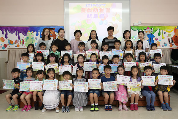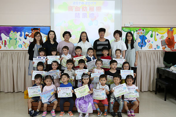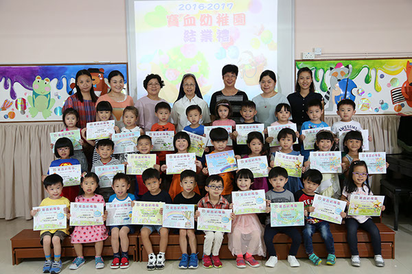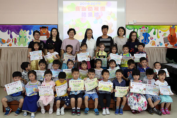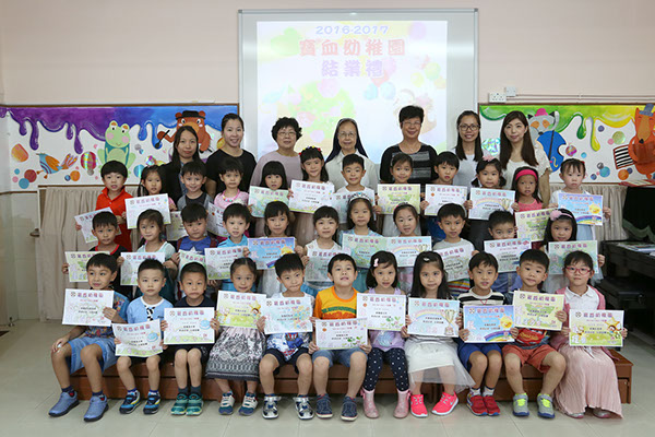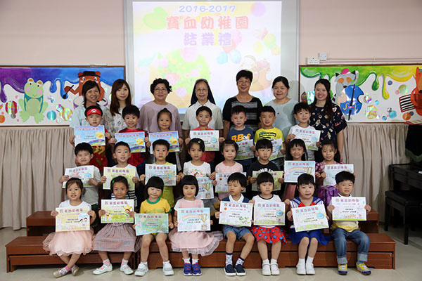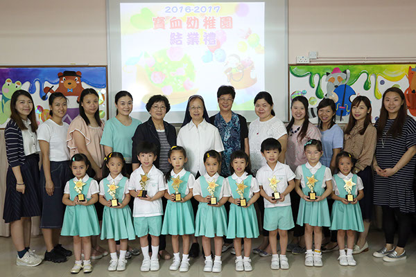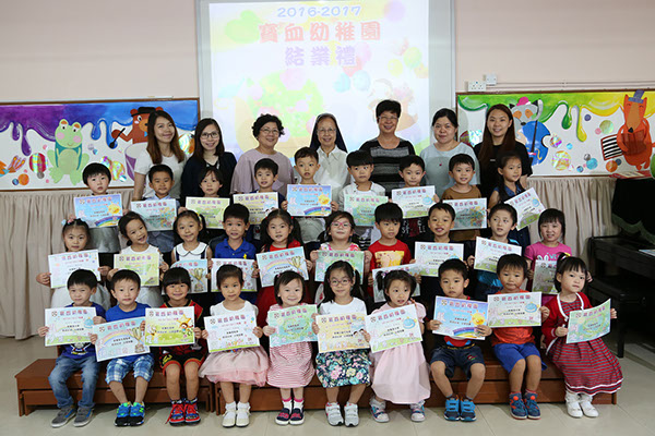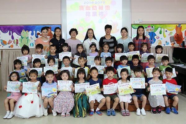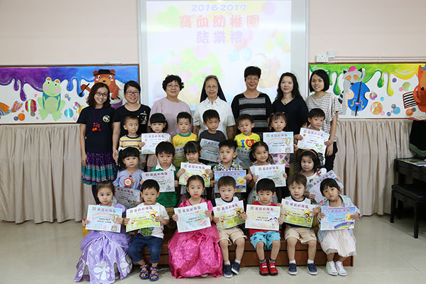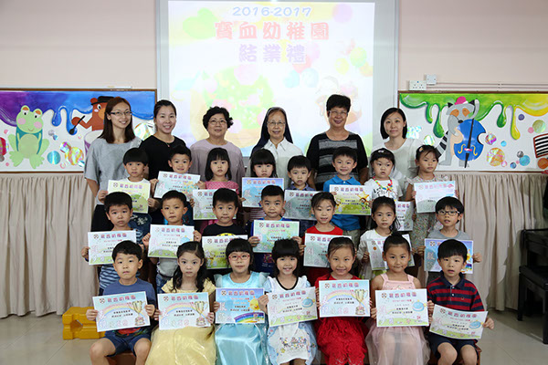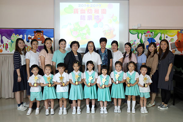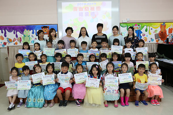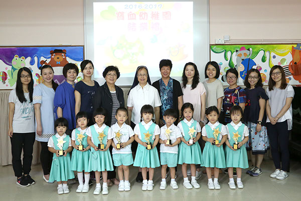 2017年7月6日在校內舉行結業禮暨生日會,校長甘修女、葉主任和彭主任頒發各項獎狀予幼兒,讚揚他們過去一年的努力,並勉勵小朋友要做一個努力學習和勇於面對困難的好孩子。此外,小朋友更懷著感恩的心,以柔和的歌聲答謝師長的教導和愛護。最後,大家一起觀看今年快樂的校園生活相片。祝願每位小朋友以愉快喜樂的心情迎接新學期!